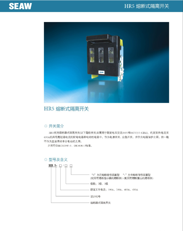 HR17系列熔斷式隔離開關(guān)