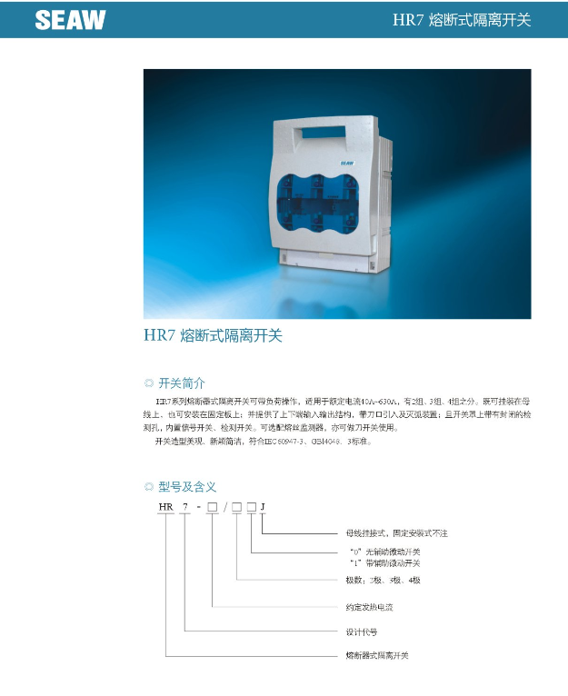 HR17系列熔斷式隔離開關(guān)
